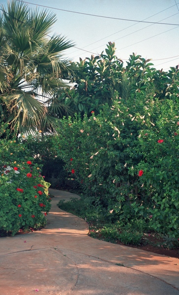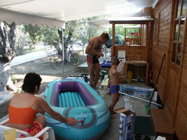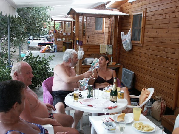 Campingplatz, wir standen vor einem Garten, nachdem sich die Einheimischen in