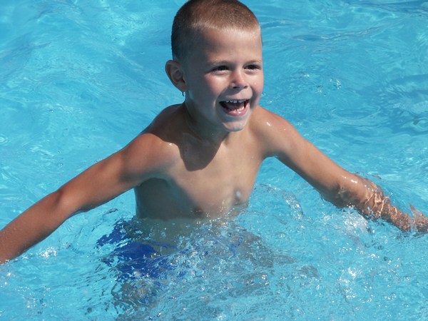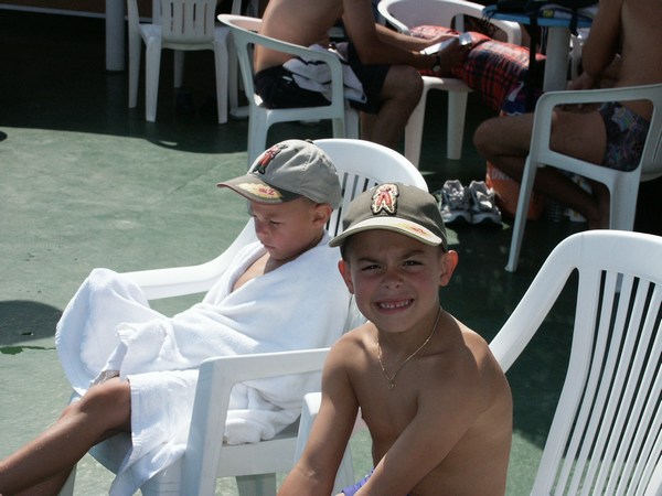 Unsere Enkelsöhne machen das Schwimmbad an Deck unsicher