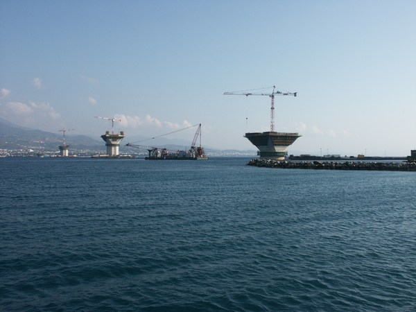 Die Brücke von Patras ist im Bau