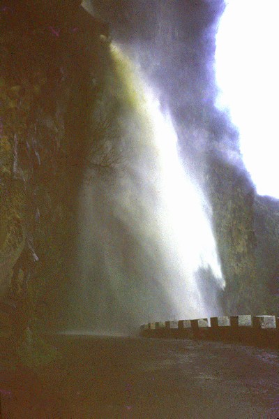 wunderschöne Straße hoch in den Bergen. Mehrere Wasserfällen stürzten zeitweise
